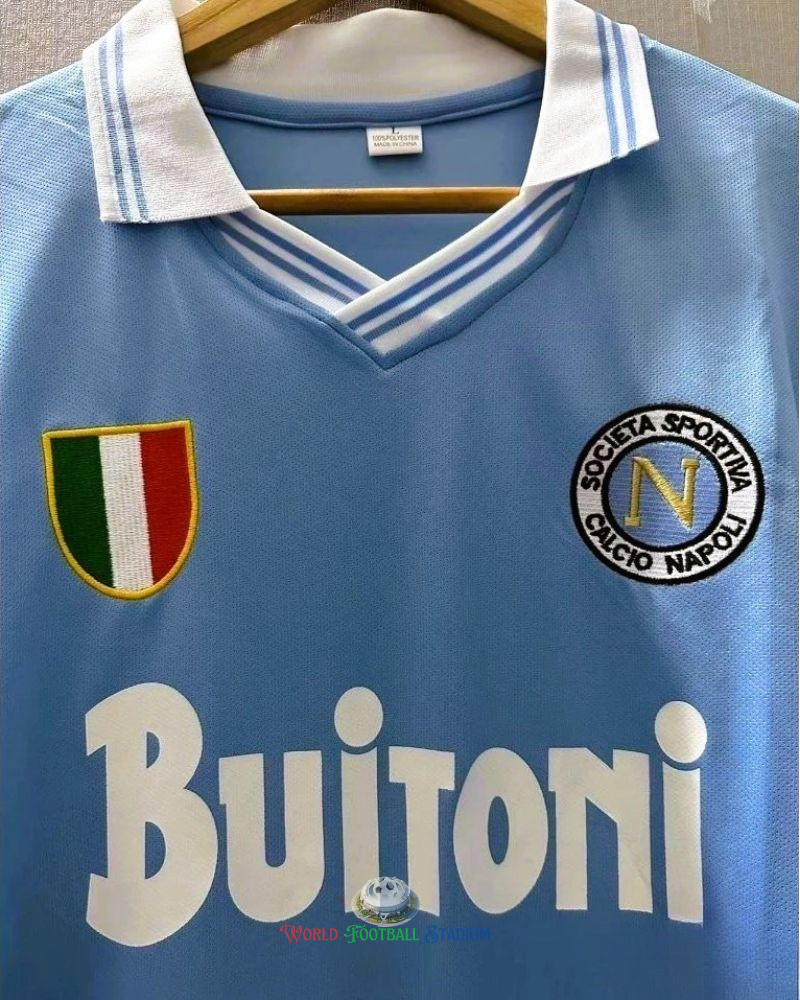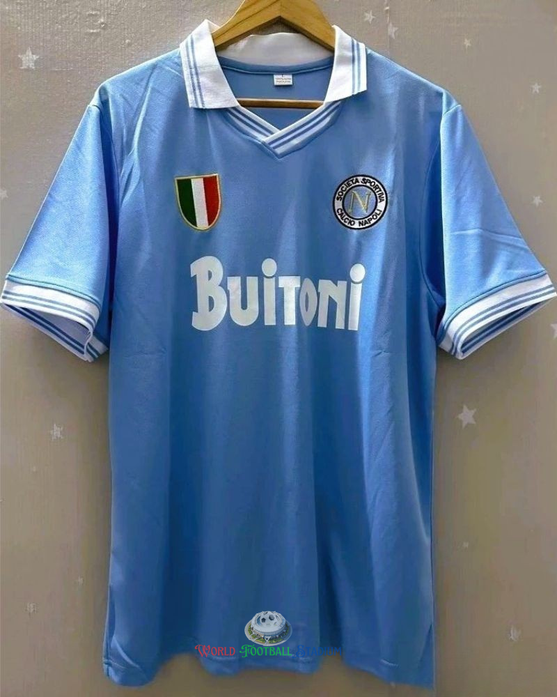 Una maglia che a distanza di anni ancora fa vibrare ed emozionare, la numero 10 di DIEGO ARMANDO MARADONA del Napoli della stagione 1986-87. E' infatti la casacca indossata nella stagione del primo scudetto conquistato dagli azzurri, con il fuoriclasse argentino assoluto idolo e trascinatore di una città e dell'intero popolo napoletano