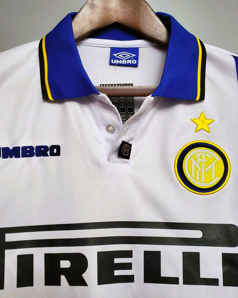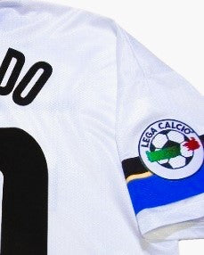Benvenuti nella storia dell'Inter con la maglia 1997-98 indossata con il numero 10 da RONALDO. Questo capolavoro prodotto da Umbro e arricchito dalla patch della Serie A, è un tributo alla classe senza eguali del "Fenomeno" brasiliano e al suo incredibile talento che ha incantato i tifosi di tutto il mondo ergendolo a leggenda del calcio mondiale