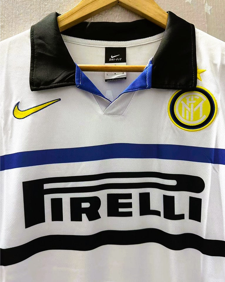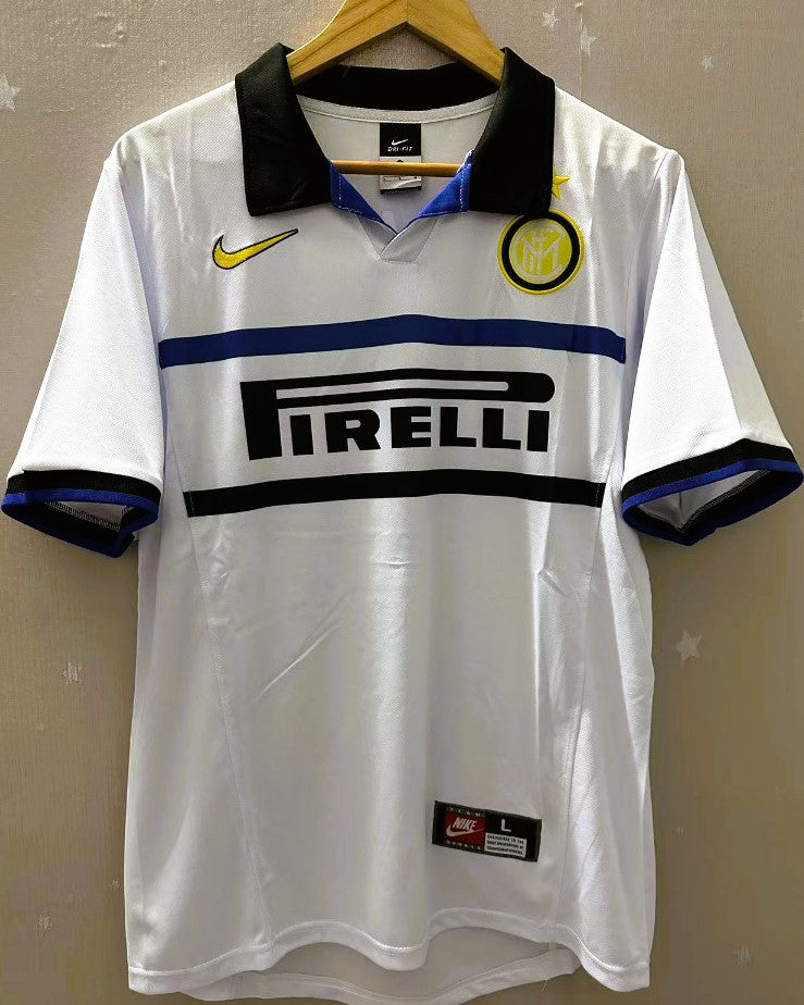 Benvenuti nella pagina del talento e della storia del calcio grazie alla maglia dell' Inter stagione 1998-99 indossata con il numero 9 da RONALDO. Prodotta da Nike, rappresenta al meglio la tradizione nerazzurra ed evidenzia le gesta del leggendario fuoriclasse brasiliano