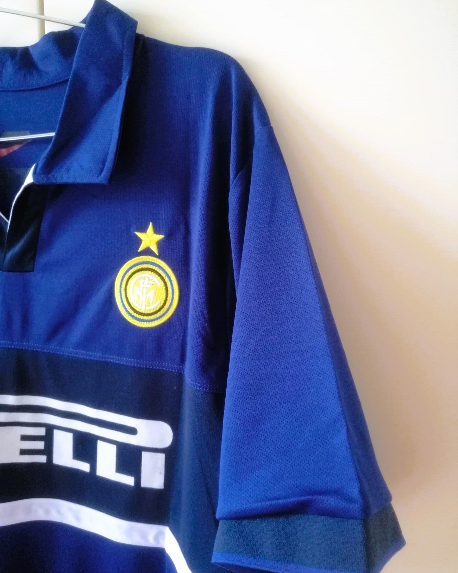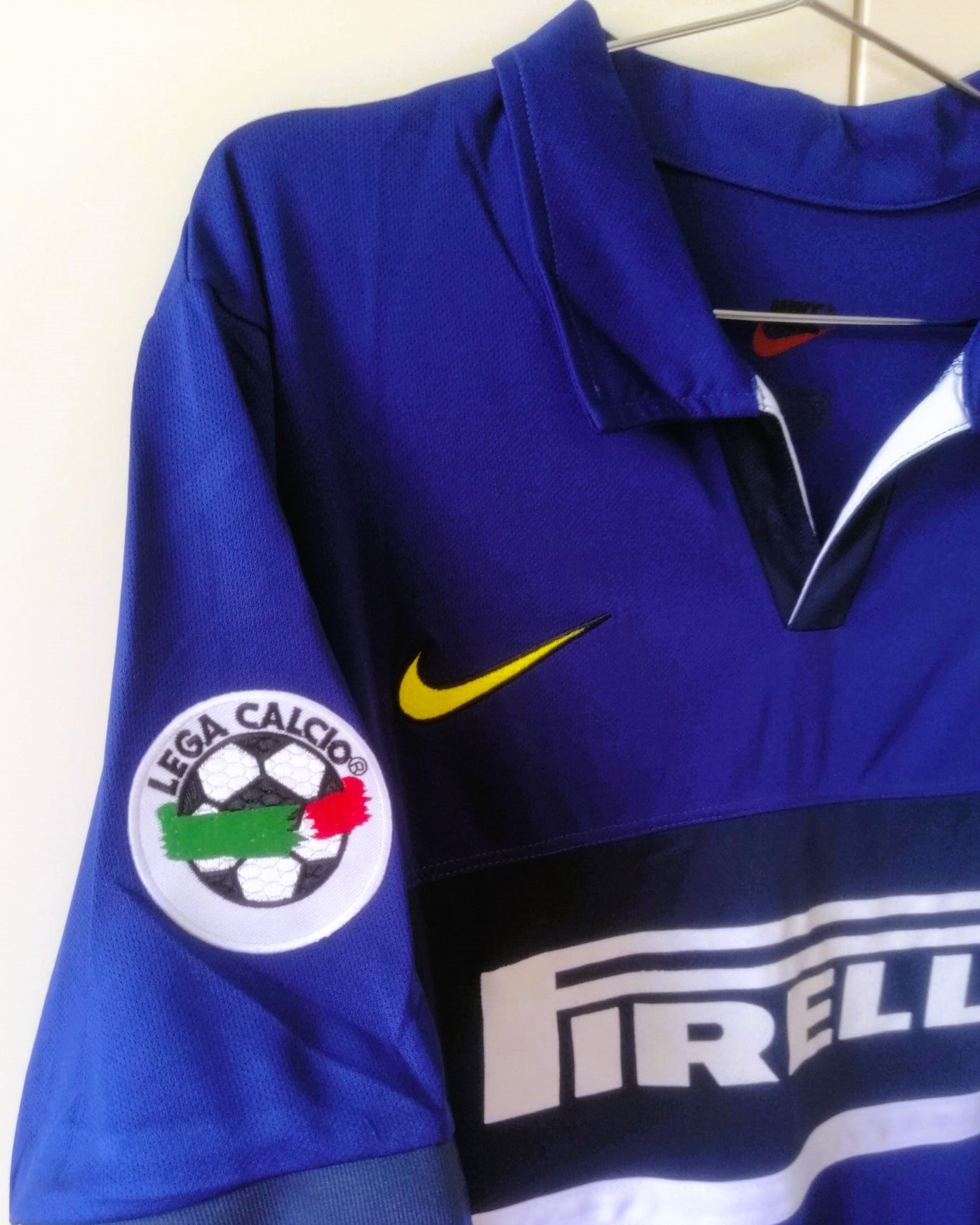 Benvenuti nella pagina del talento e della storia del calcio grazie alla maglia dell' Inter stagione 1998-99 indossata con il numero 9 da RONALDO. Arricchita dalla patch della Serie A, rappresenta al meglio la tradizione nerazzurra ed evidenzia le gesta del leggendario fuoriclasse brasiliano