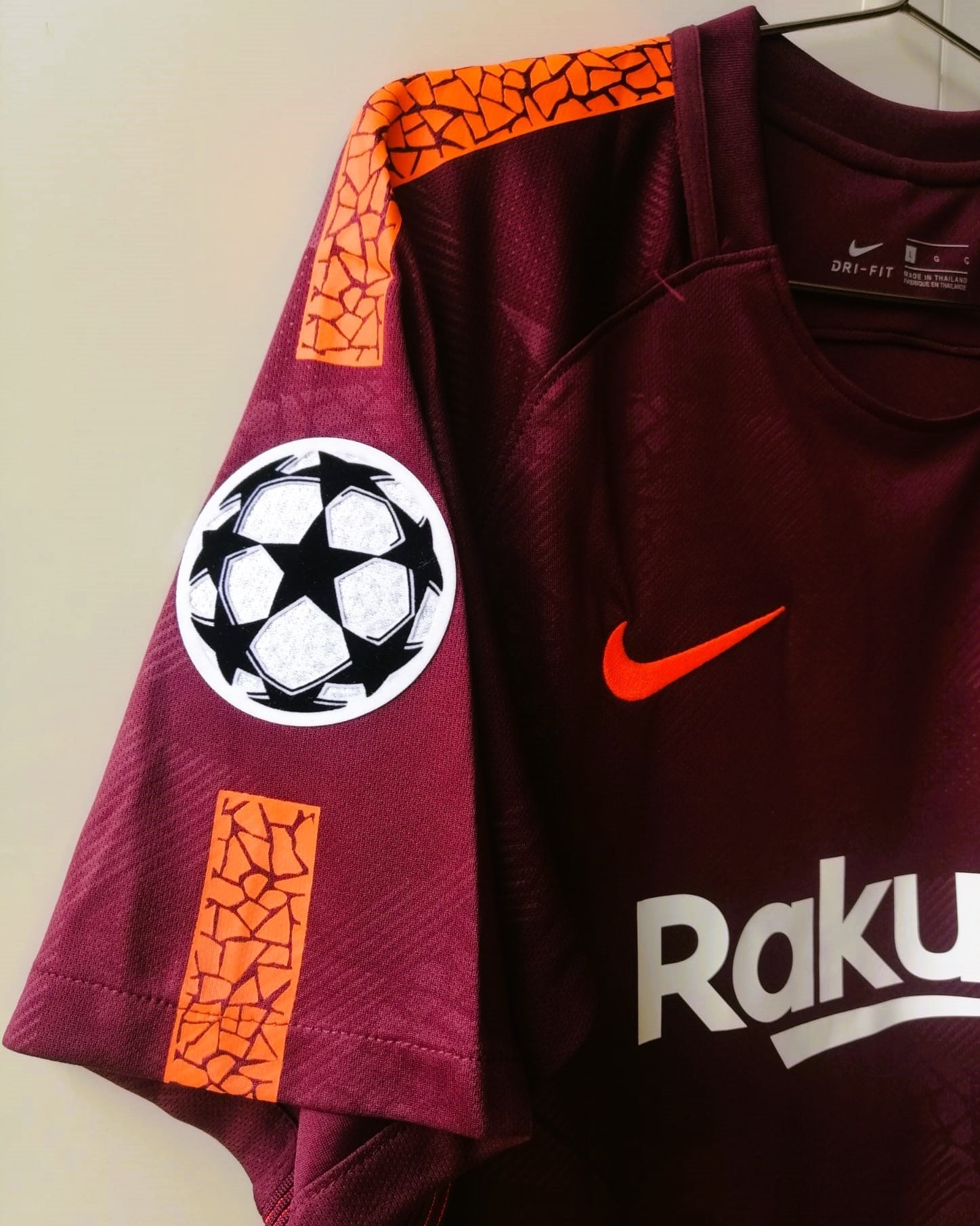 La maglia del Barcellona della stagione 2017-18 con il numero 10 di LIONEL MESSI rappresenta un nuovo capitolo della storia tra Leo e i blaugrana. Arricchita dalle patch della Champions League su entrambe le maniche, testimonia l'indissolubile legame tra il club catalano e il fenomenale fuoriclasse argentino