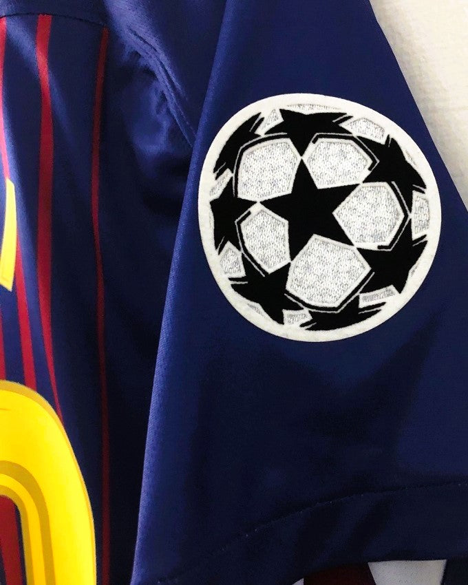 La maglia del Barcellona della stagione 2017-18 con il numero 10 di LIONEL MESSI rappresenta un nuovo capitolo della storia tra Leo e i catalani. Arricchita dalle patch della Champions League su entrambe le maniche, testimonia l'indissolubile legame tra il club catalano e il fenomenale fuoriclasse argentino