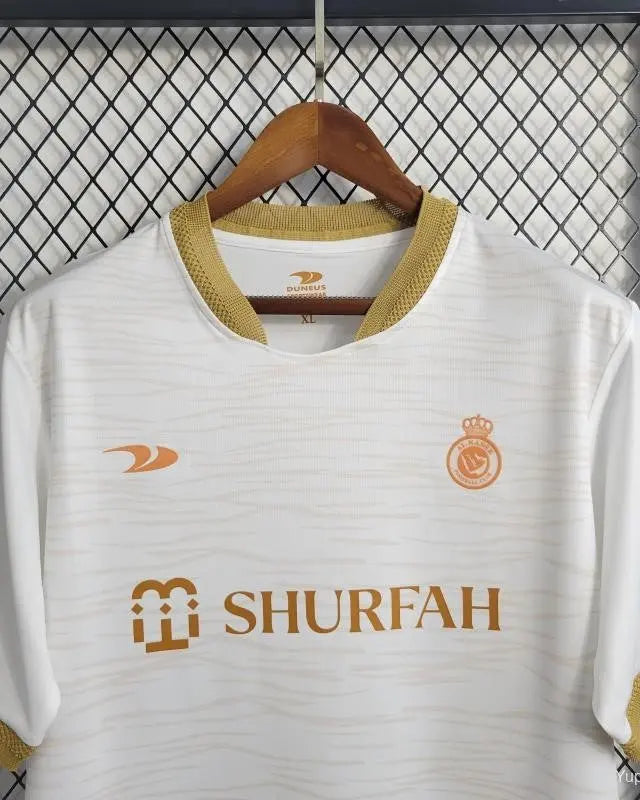 A new frontier of football is represented in this Al Nassr 2022-23 jersey with the number 7 of CRISTIANO RONALDO. A uniform that represents the future of a new football, with the personalisation of the Portuguese star player sanctioning and legitimising the birth of new footballing horizons