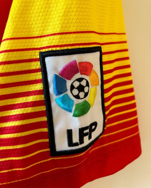 Rivivi la storia del grande calcio con la maglia del Barcellona stagione 2013-14 di NEYMAR Jr e il numero 11. Arricchita dalla patch della La Liga, testimonia il predominio del club catalano trascinato dal suo fenomenale fuoriclasse brasiliano, assoluto talento del calcio mondiale