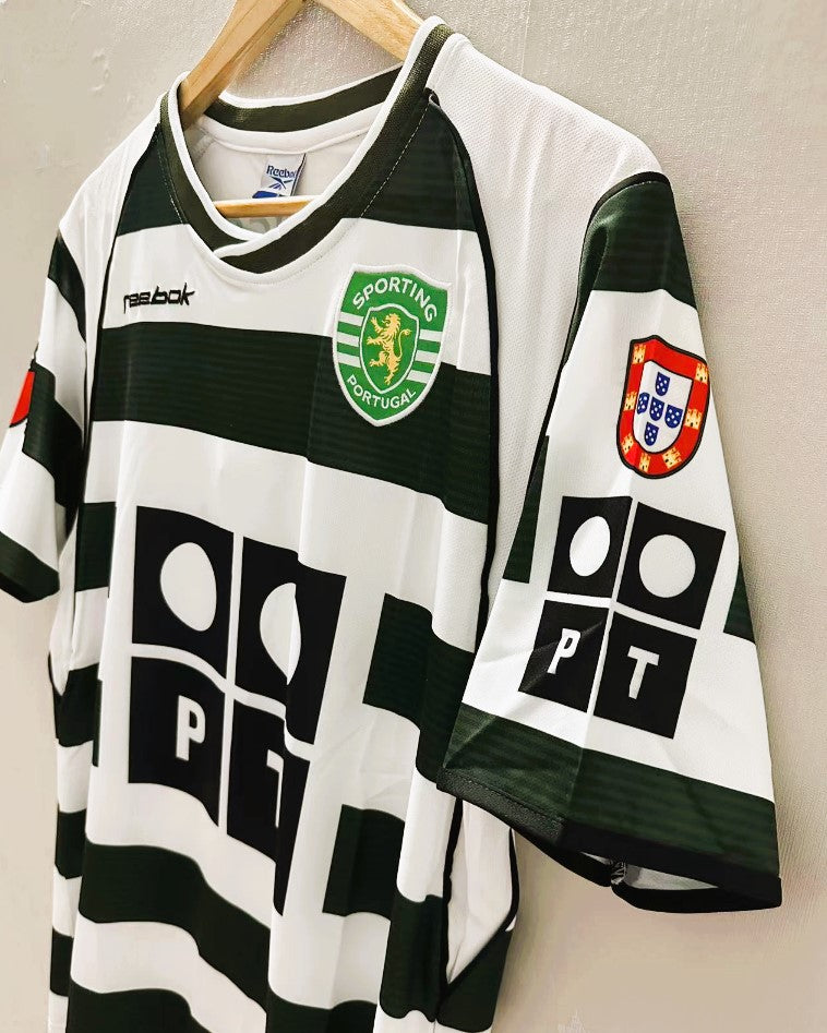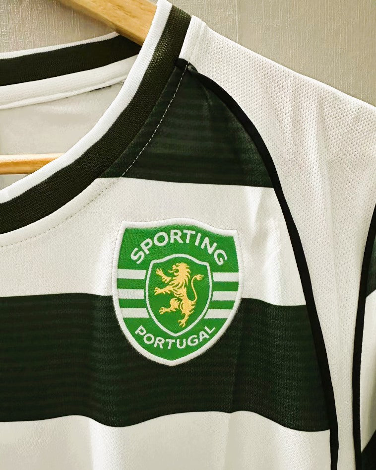 La maglia dello Sporting della stagione 2002-03 rappresenta l'inizio della carriera ad alto livello di CRISTIANO RONALDO, qui con un Nogolare numero 28. Questo gioiello celebra un giovane campione destinato a dominare il futuro del calcio mondiale, qui abbracciato al fascino della divisa portoghese