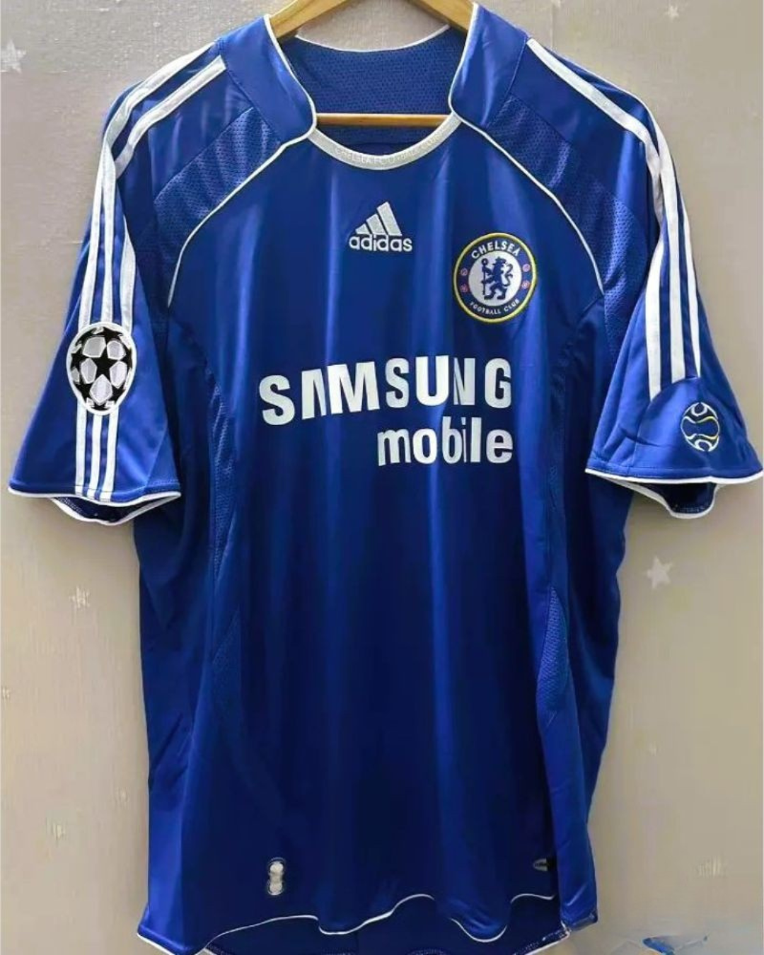 La maglia del Chelsea con il numero 7 di ANDRIJ SHEVCHENKO rappresenta al meglio la storia e la forza dei blues nella stagione 2006-07. Arricchita dalla patch della Champions League, aggiunge la personalizzazione del fuoriclasse ucraino ad elevarne ulteriormente il prestigio