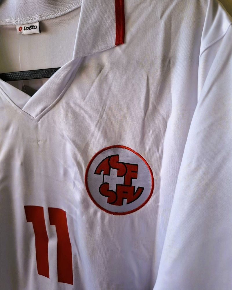 Rivivi la storia della nazionale Svizzera grazie alla maglia numero 11 di STEPHAN CHAPUISAT della stagione 1994-95. Utilizzata nella World Cup Usa '94, evidenzia la personalizzazione del bomber svizzero ad elevarne ulteriormente il prestigio