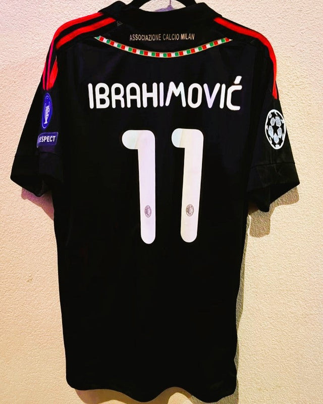 One of the most beautiful Rossoneri jerseys ever, the AC Milan jersey of the 2011-12 season made by Adidas. ZLATAN IBRAHIMOVIC's number 11, the shield on the chest together with the Champions League patches and tricolour inserts mixed with red and black create an authentic jewel that the personalisation of the Swedish star player raises to the highest level