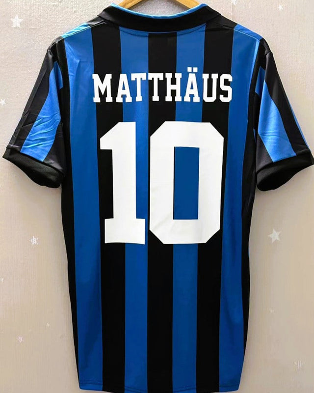Rive Inter's glorious past with a dip into the 1989-90 season and the number 10 LOTHAR MATTHAUS jersey. It perfectly encapsulates the values and colours of the Milan club, with the black and blue proudly worn by the phenomenal German midfielder