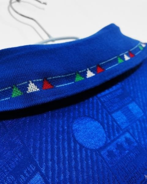 Rive the golden age of football with the 1994-95 Italy jersey worn with the number 10 by ROBERTO BAGGIO. This legendary masterpiece captures the elegance and mastery of the Divin Codino during the USA '94 World Cup, where Italian football distinguished itself (only defeated in the final) led by the Italian star