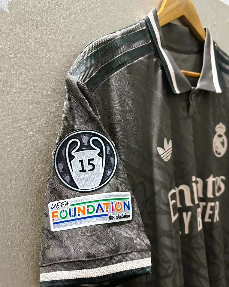 La maglia del Real Madrid della stagione 2024-25 con il numero 5 di JUDE BELLINGHAM esalta e celebra il prestigio del club più famoso al mondo. Arricchita dalle patch che testimonia le 15 vittorie in Champions League, presenta ed evidenzia la personalizzazione del fenomenale giocatore inglese