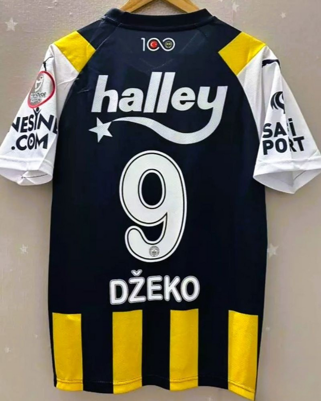 La passione e l'amore per i propri colori è magnificamente rappresentata nella maglia del Fenerbahce della stagione 2023-24 con il numero 9 di EDIN DZEKO. Arricchita dalla patch della Super Lig, evidenzia la personalizzazione del bomber bosniaco ad elevarne ulteriormente il prestigio