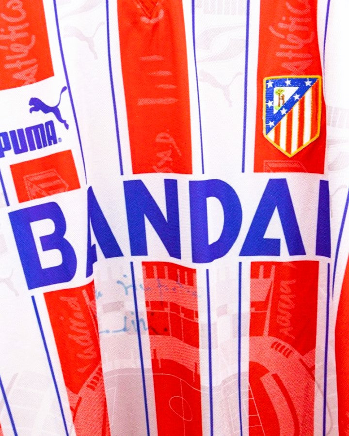 Tutto l'orgoglio dell'Atletico Madrid racchiuso in questa maglia realizzata nel 1997-98 con il numero 9 di CHRISTIAN VIERI. Il mitico stadio "Vicente Calderon" rappresentato sulla divisa biancorossa esalta ai massimi livelli l'orgoglio dei "colchoneros" e la personalizzazione del fenomenale attaccante italiano