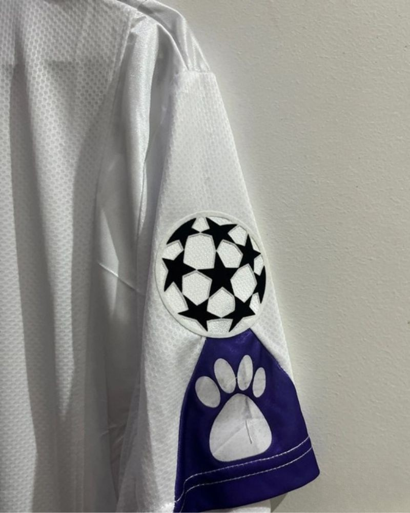Nella stagione 1997-98 la maglia numero 7 di RAUL GONZALEZ BLANCO testimonia e omaggia il suo inscalfibile legame verso il Real. Arricchita dalla patch della Champions, evidenzia dal grandezza dei blancos di Madrid con la personalizzazione del fuoriclasse spagnolo