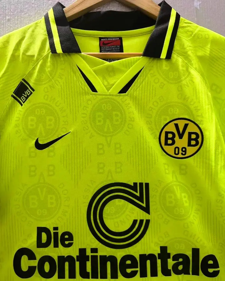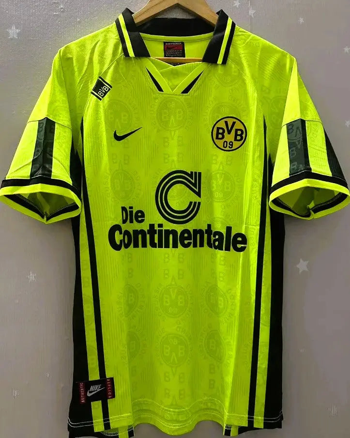 One of the most iconic teams ever takes us back to the 1996-97 season with the Borussia Dortmund jersey and STEPHAN CHAPUISAT's number 9. A much-loved masterpiece of design, with the Swiss striker's personalisation making this uniform a true gem